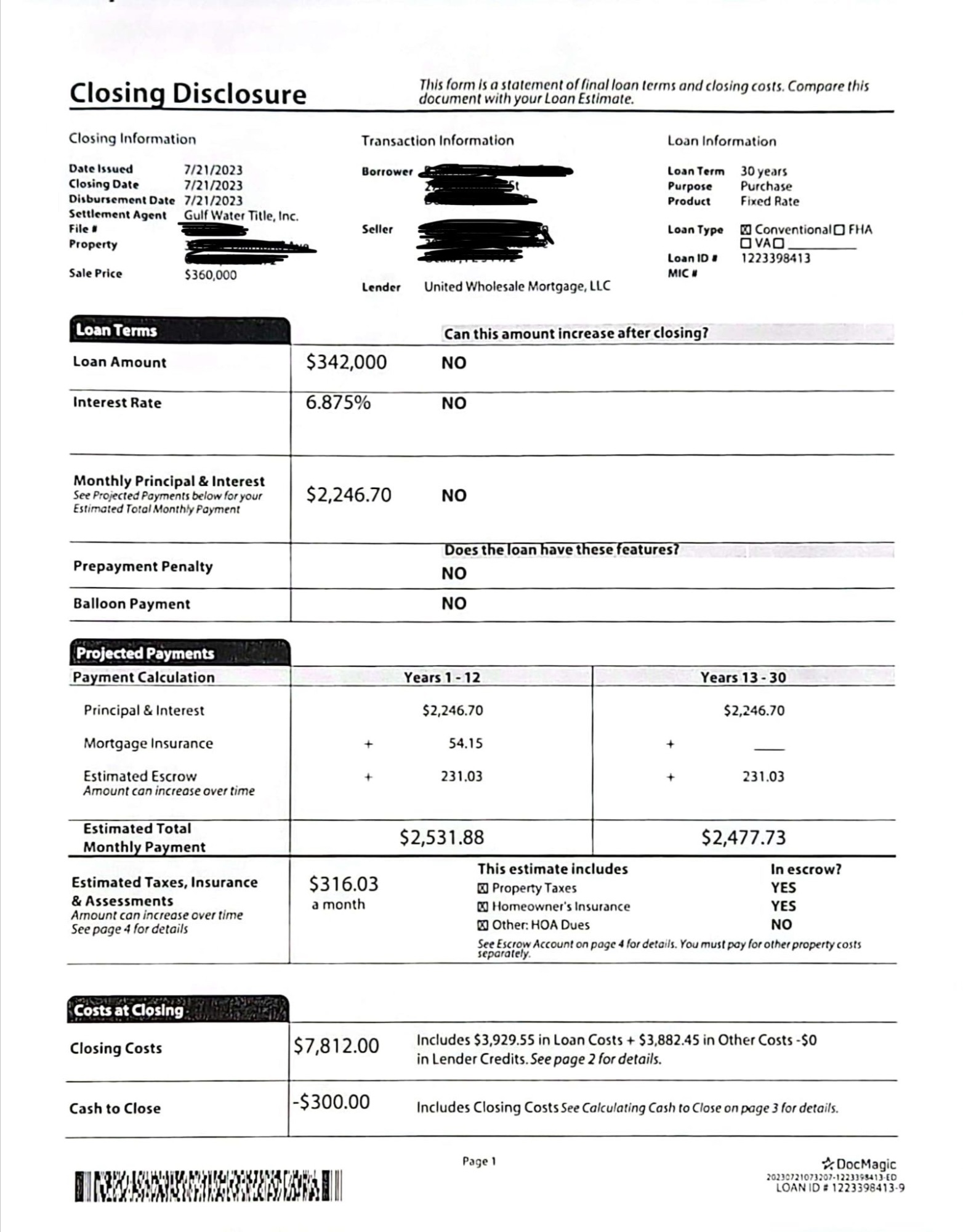 Nuestro valioso cliente, el Sr. Rivera, recientemente compró la casa de sus sueños en Ocala a través del Programa Florida Hometown Heroes. Aquí tienes un desglose de su divulgación de cierre: